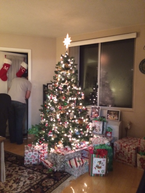 Hubs was checking for Santa. See all those gifts?